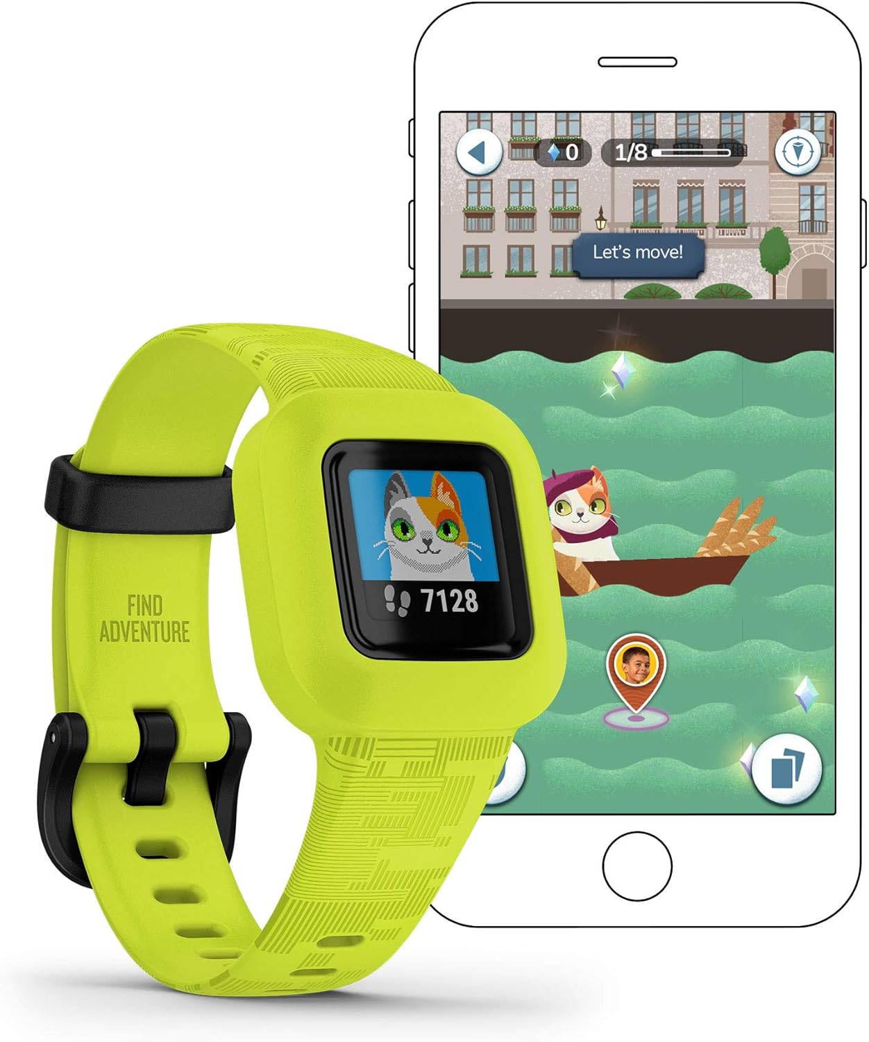 Durable activity tracker for kids with fun designs and basic step tracking.